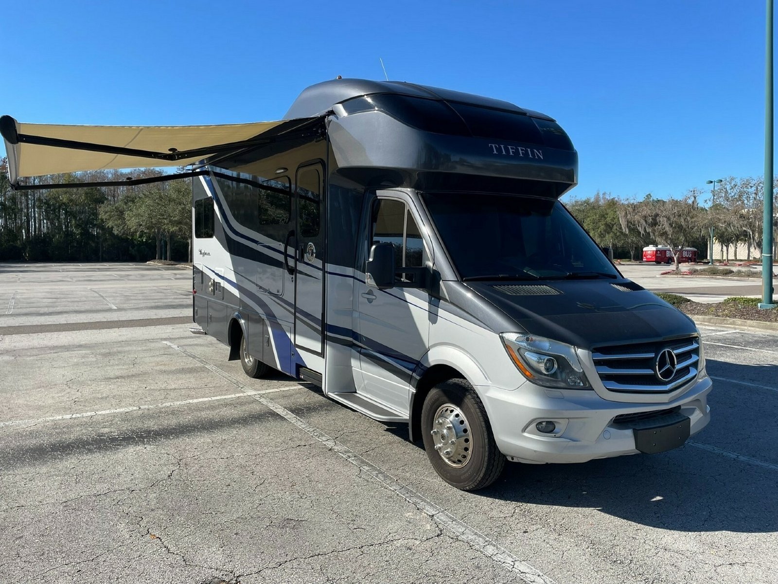With any Tiffin Wayfarer class C diesel motorhome you will enjoy the luxurious Mercedes-Benz chassis . Inside each Wayfarer you will enjoy high-end finishes throughout, including hardwood cabinetry and premium-grade linoleum. 15K Coleman roof mounted ducted AC/heat pump, and a 30k BTU propane ducted furnace so you can camp year round. Non-smoking pet free coach.